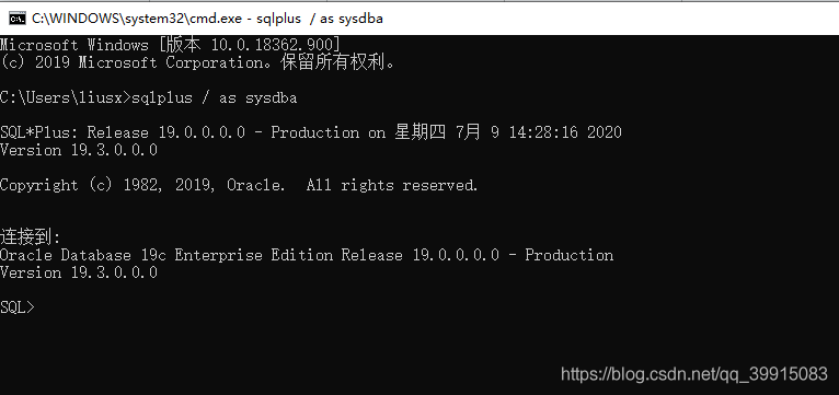 输入用户名 sys/口令 as sysdba(数字后面有一个空格 as后面有一个空格 一共两个空格)