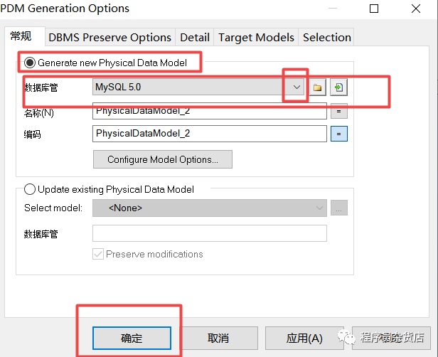 1.2根据oracle数据库模型生成mysql数据库模型: