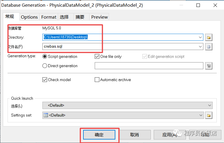1.3根据新生成的mysql数据库模型导出mysql数据库脚本:
