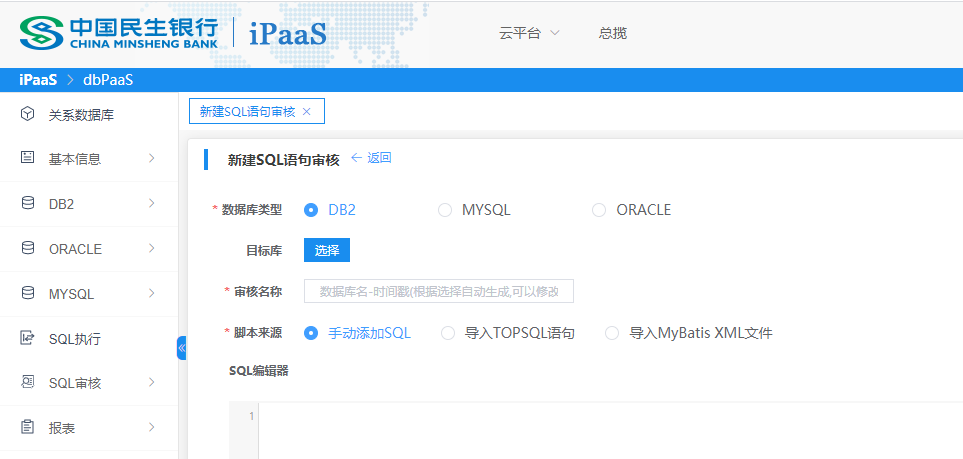 SQL 语句审核:新建或编辑SQL语句审核,手工录入或导入SQL,对SQL进行语法分析、执行计划审核,自动获取审核结果,评审人可对SQL审核结果进行批注。
