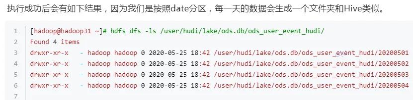 insert完成后查看Hudi表本地目录结构,生成的元数据、分区和数据与Spark Datasource写入均相同。