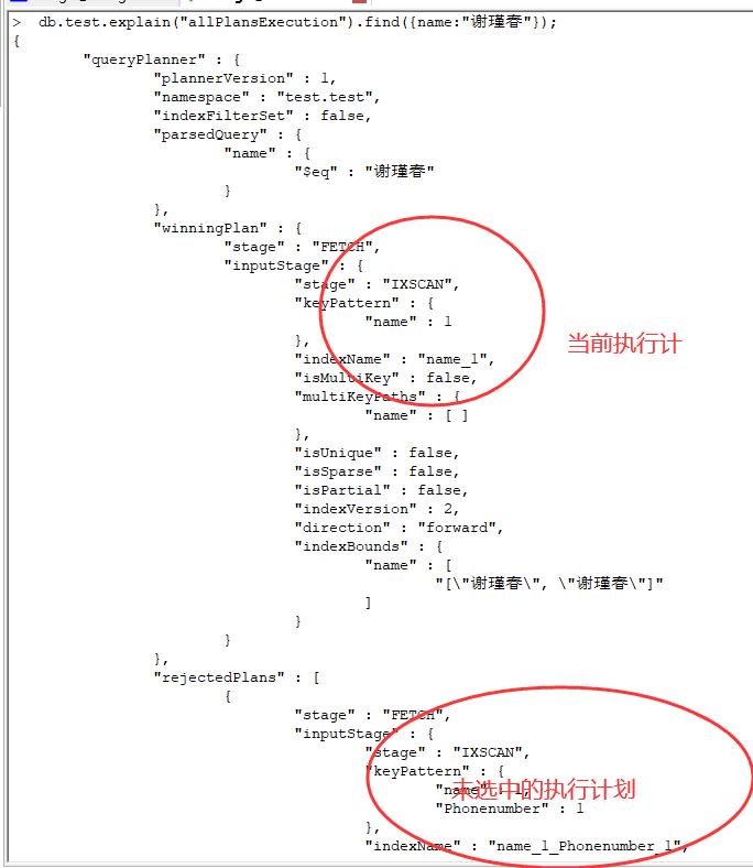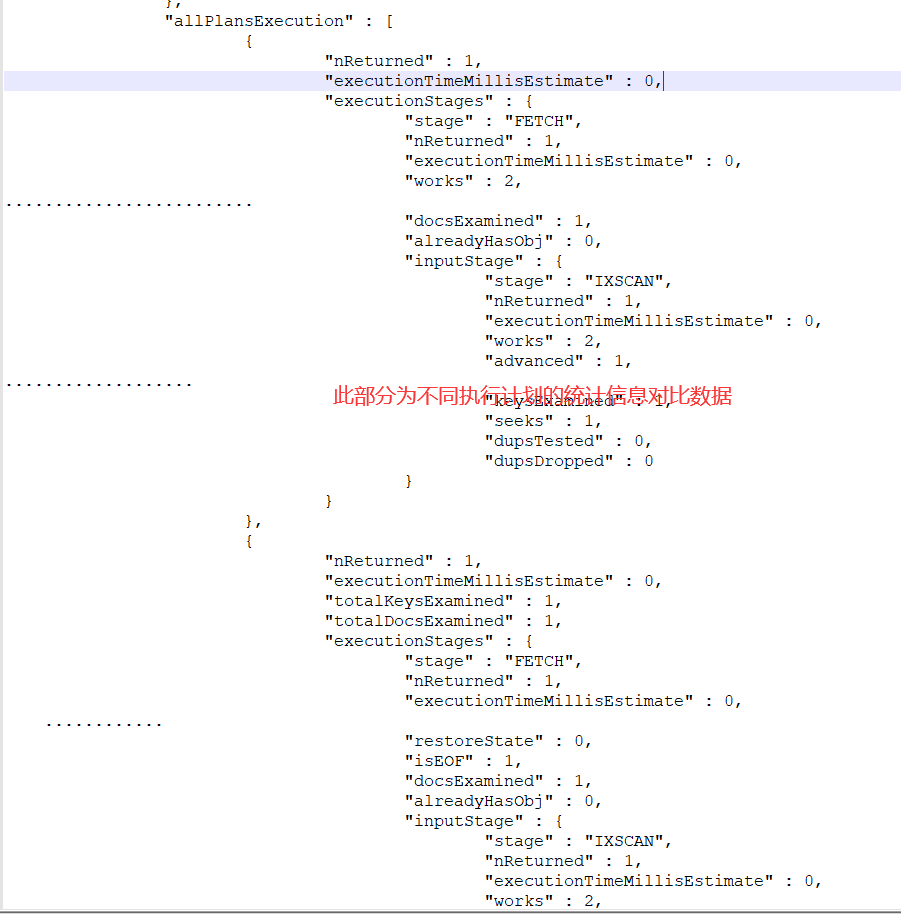 db.Text.explain("allPlansExecution").find({"txtId":"5855"});--包含以上两种模式,并且显示在生成执行计划时被拒绝的执行计划的统计信息,有点类似Oracle10053 event.