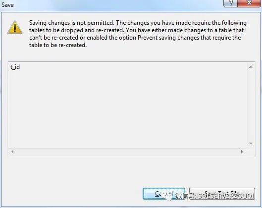 Saving changes is not permitted. The changes that you have made require the following tables to be dropped and re-created. You have either made changes to a table that can't be re-created or enabled the option Prevent saving changes that require the table to be re-created.