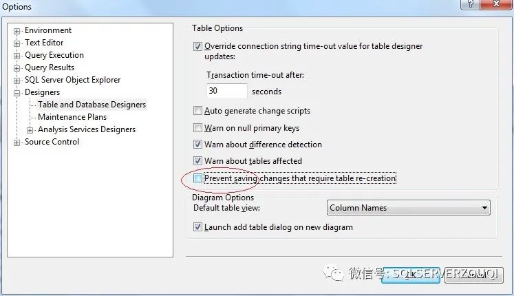 是因为SSMS里有个选项没设置,SQL Server认为有删除/重建表的脚本不安全,所以默认关闭了,需要手动开启一下,去掉那个勾: