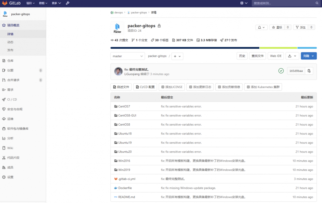 此文件是Gitlab CI/CD的主配置文件,常用配置参数在此文件中定义,无需修改packer和操作系统自动应答文件。