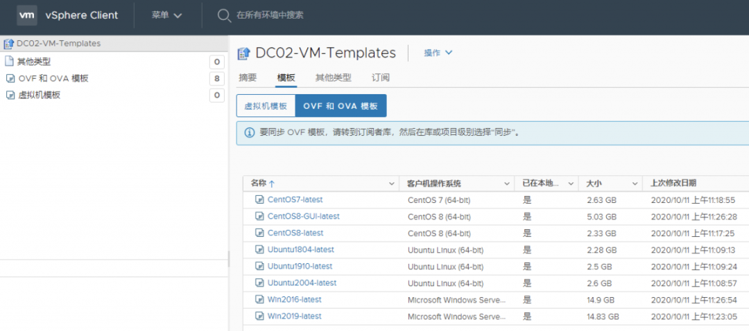 采用vCenter内容库存储模版,并以-latest为后缀;