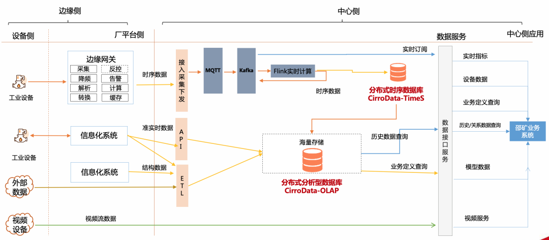除了对时序数据的处理,平台还接入边缘侧产生的准实时数据,以及业务信息化系统中的结构化数据,最终连同时序数据一同汇入CirroData-OLAP分布式分析型数据库集群。基于智能算法模型对数据仓库中的数据进行查询、计算和分析,使煤矿数据资产得到了充分的价值体现。