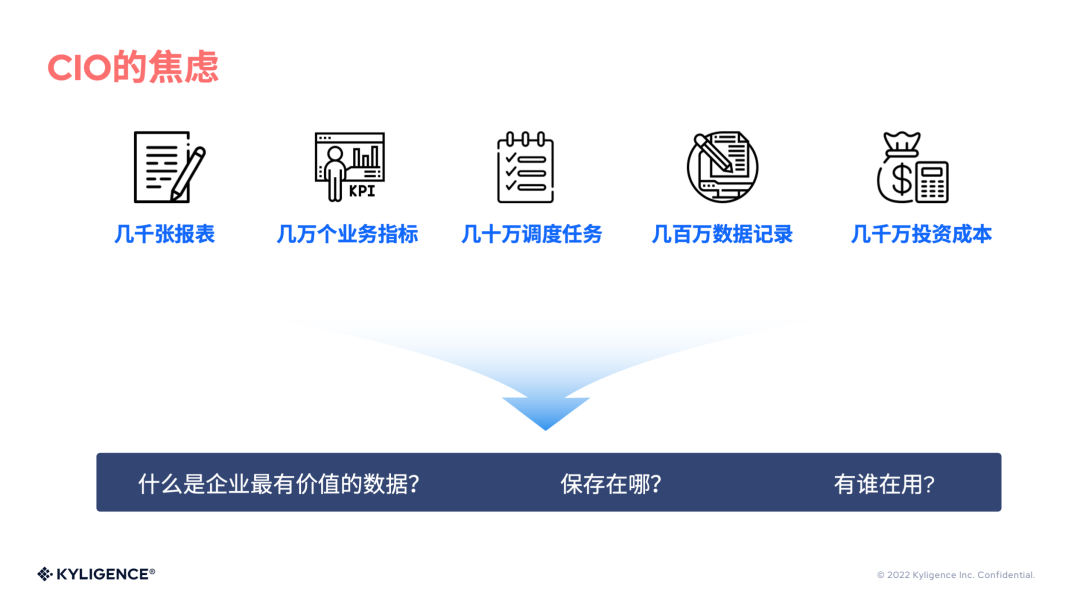 在过去的几年里面,很多 CIO 是非常焦虑的。如果企业使用了一个中等规模以上的 BI 或者是数据仓库的技术栈,就会有几百到几千张的报表,每张报表如果有十个以上的指标,那就意味着有几万甚至几十万的业务指标。这些口径是不是统一?这些数据是不是在被人使用?这些相应的价值其实已经非常复杂了。