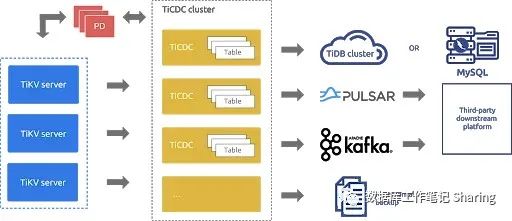 数据高可用:TiCDC 从 TiKV 获取变更日志,意味着只要 TiKV 具备高可用就能保证数据的高可用,遇到 TiCDC 全部异常关闭的极端情况,后续启动还能正常获取数据。