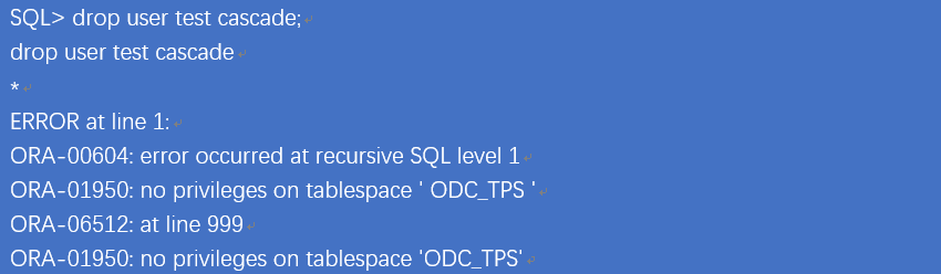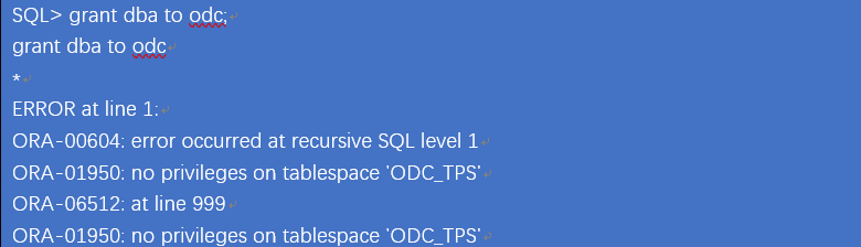 排查到这一步就已经比较明显了,当数据库中有ddl操作时,ddl的触发器需要将这一操作记录到odc用户下的相关表中(所在的表空间是ODC_TPS),但是当前odc用户在该表空间上没有配额,导致以上报错。