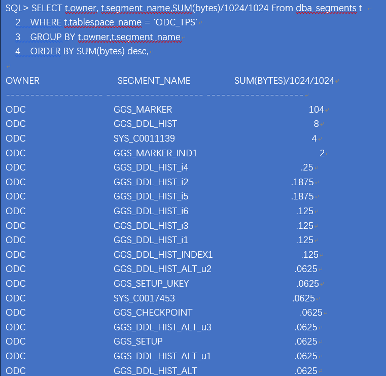 可以看到该表空间为ODC用户所使用,询问客户后得知,ODC为ogg的管理用户。