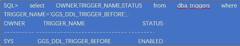 可以看到ogg的DDL触发器存在且是enabled状态,ogg是开启ddl同步的。