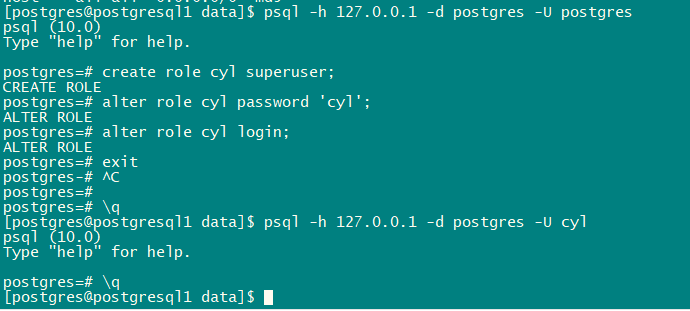 create role cyl superuser; alter role cyl password 'cyl'; alter role cyl login; |