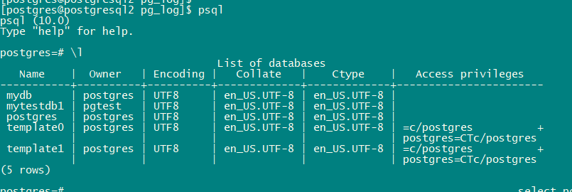 postgresql2 | Red Hat Enterprise 6.5 | 192.168.20.102 | PostgreSQL10.0 |