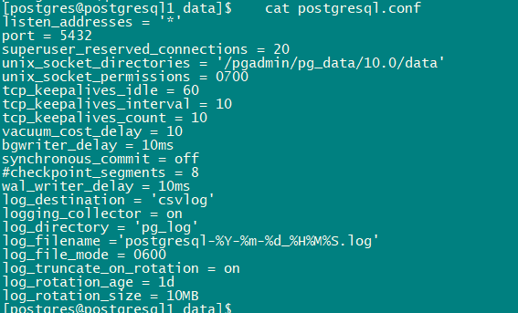 初始化(密码:postgres) mkdir -p /pgadmin/pg_data/10.0/{data,backups,scripts,archive_wals} /pgadmin/pgsql/bin/initdb -D /pgadmin/pg_data/10.0/data/ -W |