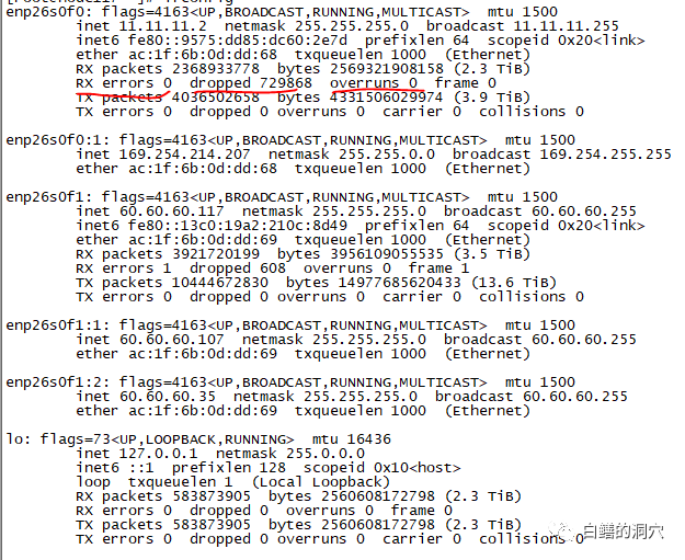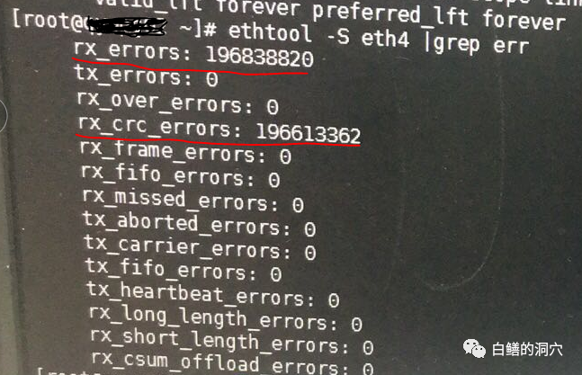 ethtool是网卡诊断最为重要的工具,大多数的网卡上面的问题都可以通过这个工具来检查。下面一套系统的网络丢包问题比较严重,通过ethtool很明显就发现了问题。