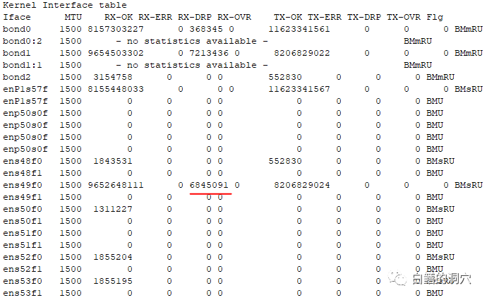 通过netstat -in看,RX-DRP的数量比较高,而且还在不断的增长。这就说明目前网络包的dropped一直在发生。