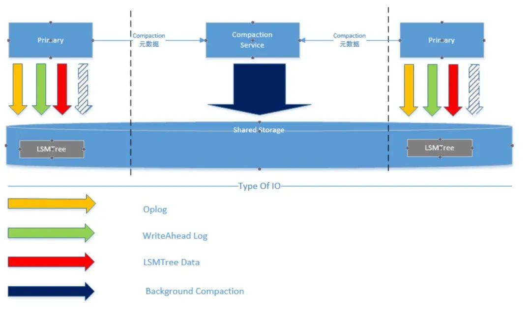 LSMTree Compaction 计算/IO卸载到Compaction统一调度池,集中管理,不浪费用户读写IO