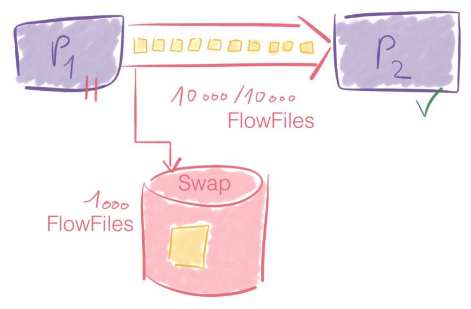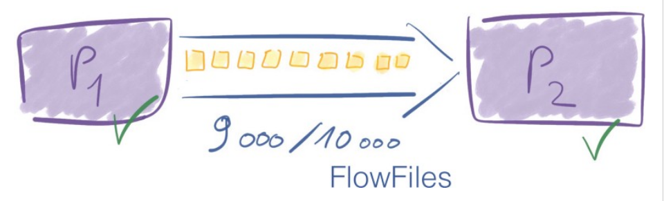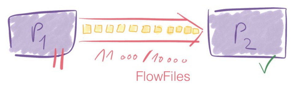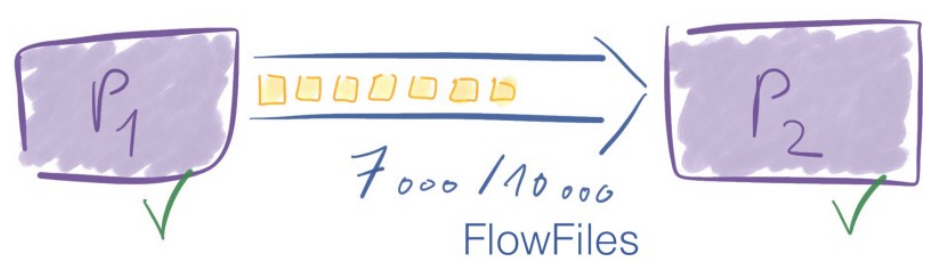假设你在两个处理器之间最多只能有10000个FlowFile。在某个时候,连接中有7000个元素。因为限制为10000。P1仍然可以通过Connections