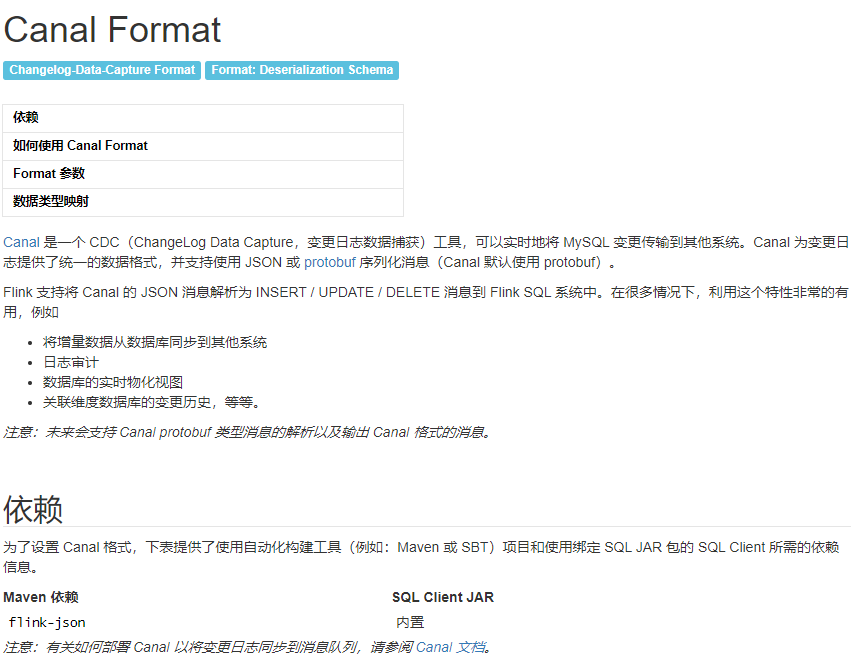 官方详细说明:https://ci.apache.org/projects/flink/flink-docs-release-1.11/zh/dev/table/connectors/formats/canal.html