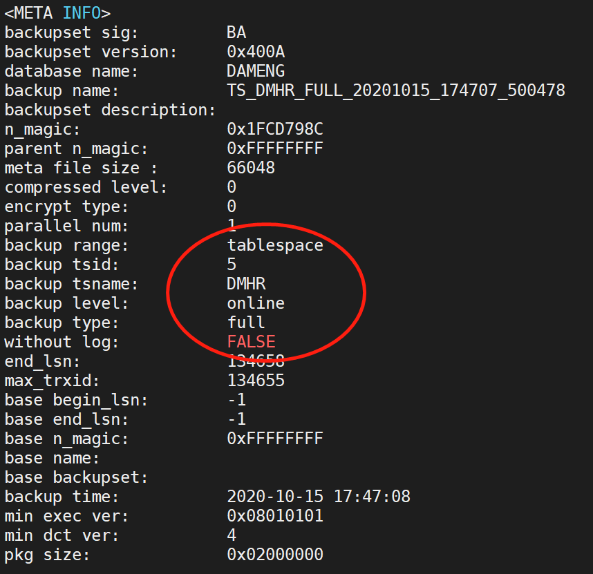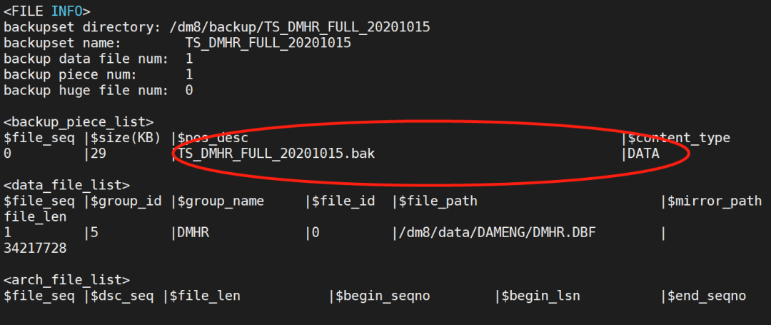 RMAN>show backupset '/dm8/backup/TS_DMHR_FULL_20201015';