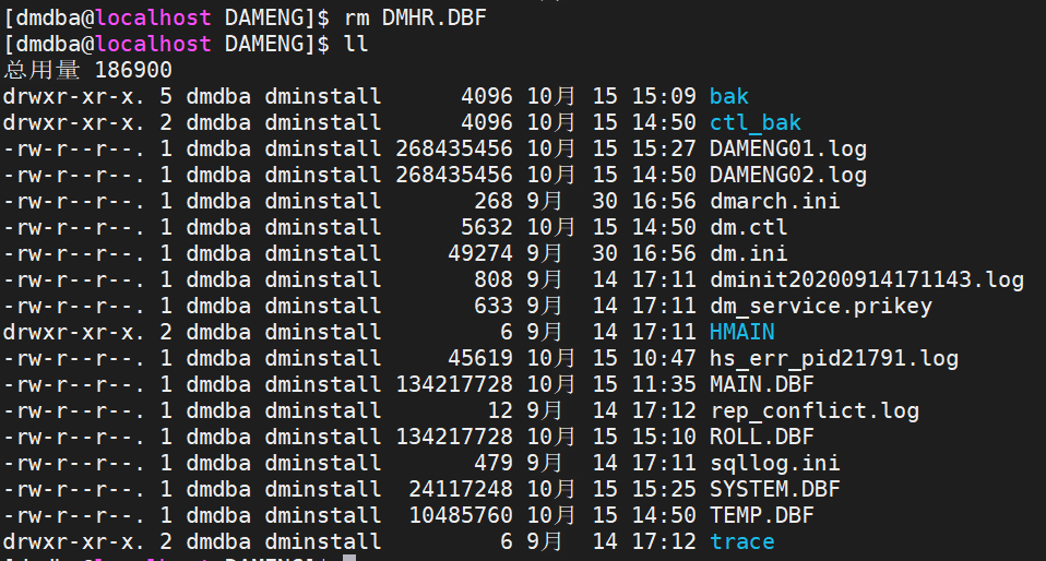 表空间还原会自动应用归档日志,我们以DMHR表空间的备份还原为例,演示造成归档日志不完整的原因,及修复方法。