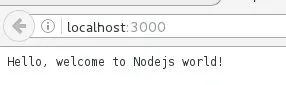 const http=require("http");const hostname = "127.0.0.1";const port = 3000;const server = http.createServer( (req,res) => { res.statusCode = 200 ; res.setHeader("Content-Type","text/plain"); res.end("Hello, welcome to Nodejs world!"); });server.listen(port,hostname, ()=>{ console.log(`server running at http://${hostname}:${port}/`); });