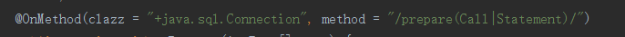 使用安全的JVM动态追踪工具Btrace, 按照Btrace语法编写追踪的SQL Java 脚本,指定方式如下:Btrace使用@OnMethod注解定义需要分析的方法入口,在@OnMethod注解中,需要指定class、method以及location等,class表明需要监控的类,method表明需要监控的方法。