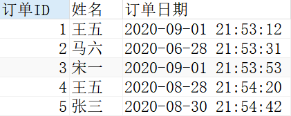 我们想知道每个订单ID都是哪些客户订购的,以及具体的订单时间。我们运行下面的 SQL 语句(包含 INNER JOIN):