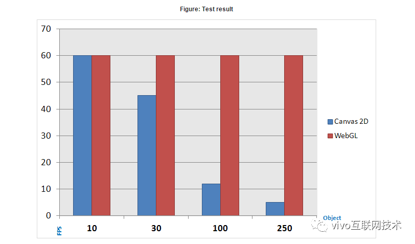 从结果中可见,当需要执行大量绘制任务时,WebGL的性能远远超越了Canvas 2D Api,达到了后者的数10倍。