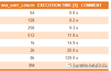 最后借用某篇文章中的对于MAX_SORT_LENGTH,调整的后的对于ORDER BY的执行的时间的变化,列一个表. 这里的sort_buffer_size 的配置是20MB.