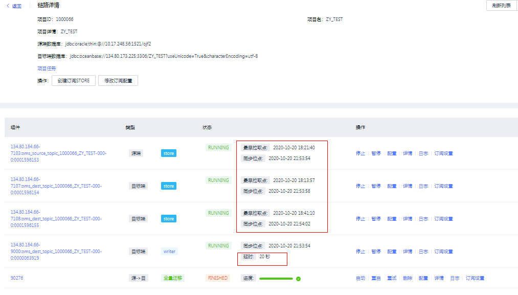1.表结构、全量数据成功迁移,源端和目标端增量进程均已成功启动。