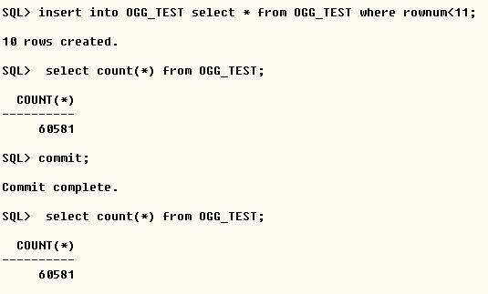 在Oracle端(源端)的OGG_TEST表中插入数据,并提交。