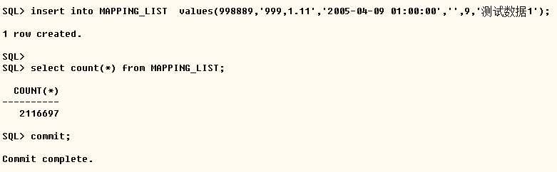 而在Oracle端(源端)的另一张表MAPPING_LIST表中插入数据,并提交。
