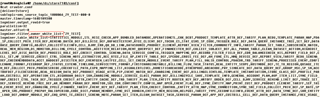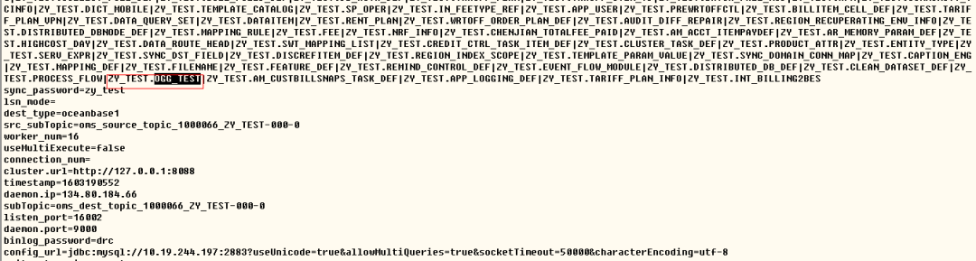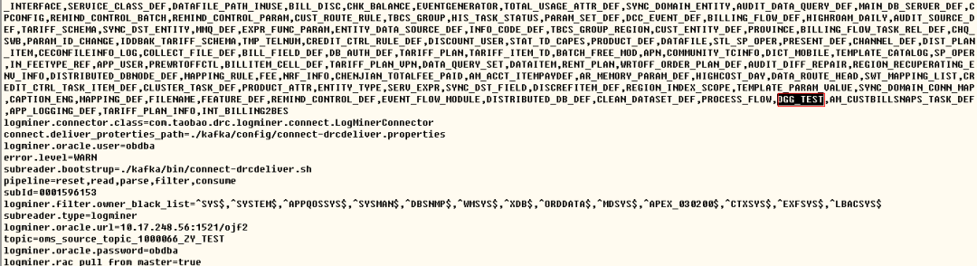将输出的表信息与白名单的表进行对比,发现日志中输出表被截断,截断点之前的表可以实时同步,截断点之后的表无法同步。