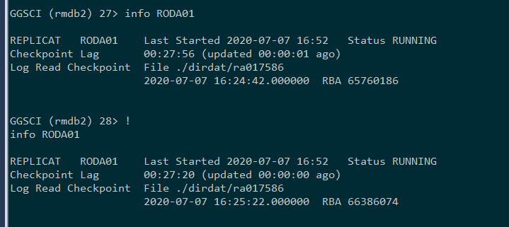 和Extract进程一样,Replicat也有其内部的checkpoint机制,保证进程重启后可以从上次的记录的位置开始恢复而无数据损失的风险。