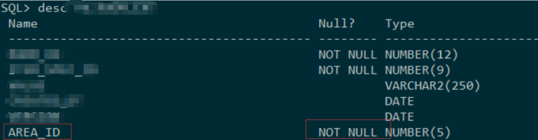 发现约束有问题,目标端的表字段AREA_ID是notnull,与源端不一致