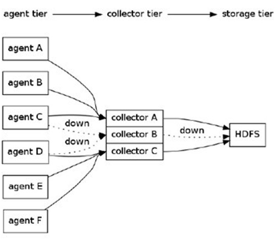 此外,使用autoE2EChain,当某个collector 出现故障时,Flume会自动探测一个可用collector,并将数据定向到这个新的可用collector上。