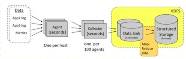 直接支持利用MapReduce处理数据。它内置了两个mapreduce作业,分别用于获取data和将data转化为结构化的log。存储到data store(可以是数据库或者HDFS等)中。