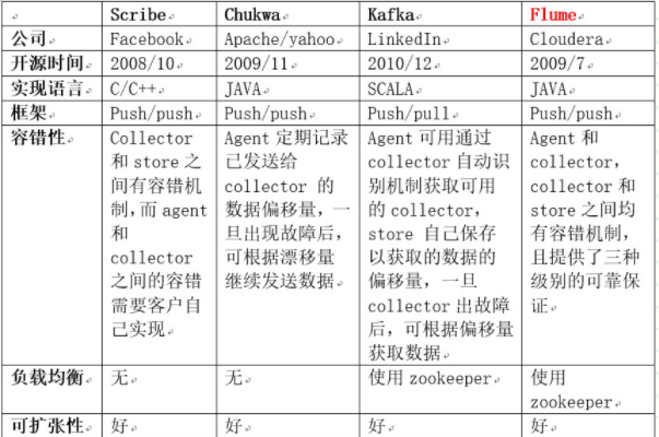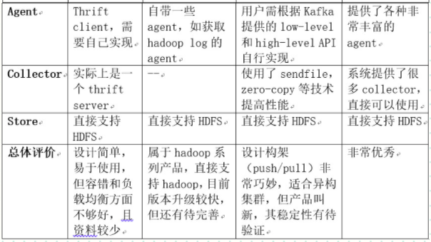 特点:容错性好。当后端的存储系统crash时,scribe会将数据写到本地磁盘上,当存储系统恢复正常后,scribe将日志重新加载到存储系统中。
