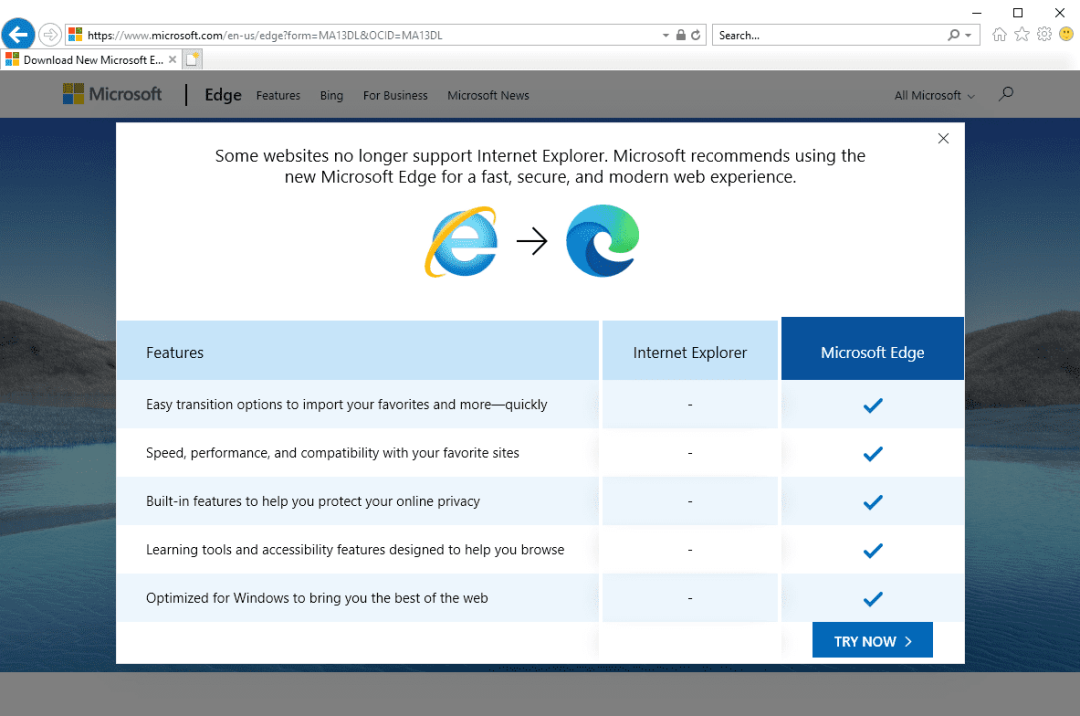 计划显示,到2020年11月30日,该浏览器将永远退役,微软不会再提供安全补丁、更新或支持。