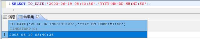 SELECT TO_DATE('2003-06-19 08:40:36','YYYY-MM-DD HH:MI:SS'); |