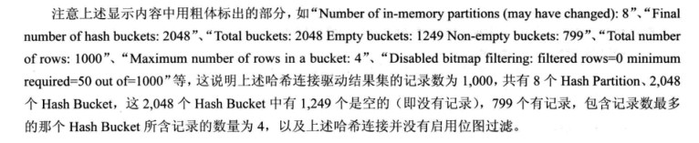 如果散列值指向内存中的一行,则数据库将完成连接并返回该行。但是,如果该值指向磁盘上的哈希分区,则数据库使用与原始数据集相同的分区方案,将该行存储在临时表空间中。