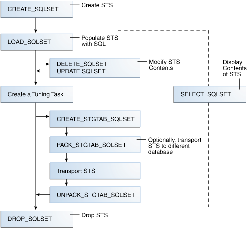 CREATE_SQLSET过程DBMS_SQLTUNE或DBMS_SQLSET在数据库中创建空的STS。 - 加载SQL调整集 : 要使用SQL语句加载STS,请使用或包中的