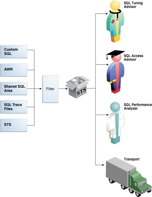 您可以将STS用作多个数据库顾问程序的输入,包括SQL Tuning Advisor,SQL Access Advisor和SQL Performance Analyzer。