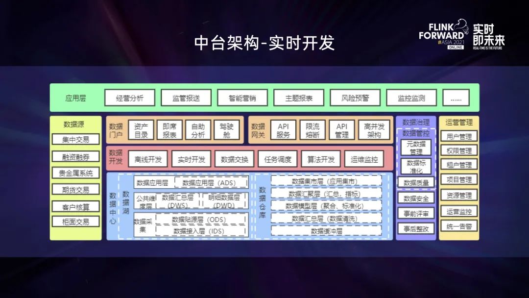 - 其次是 DWD 层的数据建模,创建 Flink 任务消费 ODS 层的 Kafka 消息,进行数据清洗,过滤、脱敏、关联转换等处理。同时以客户账户粒度进行数据合流,借助离线维表进行扩围操作,以获得账户粒度的明细表,实现 DWD 层的建立;