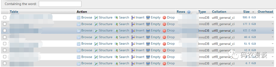1.通过Phpmyadmin size字段排序查看哪个表占用过大