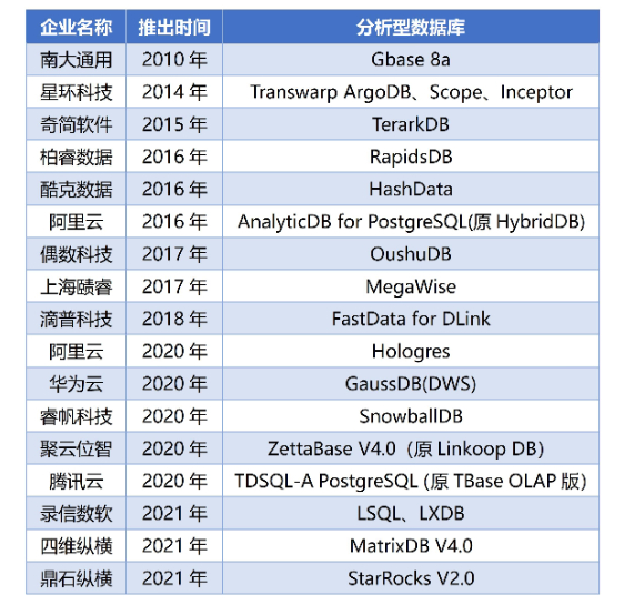 我国典型分析型数据库(部分)