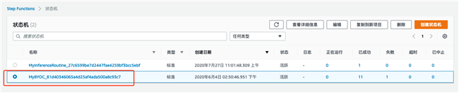 (6)执行完成后,打开Amazon Step Functions控制台,会看到多出一个状态机,如下图所示: