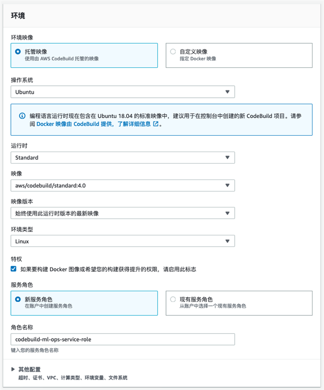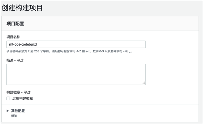 (6)打开Amazon CodeBuild控制台,按照下述信息创建项目;